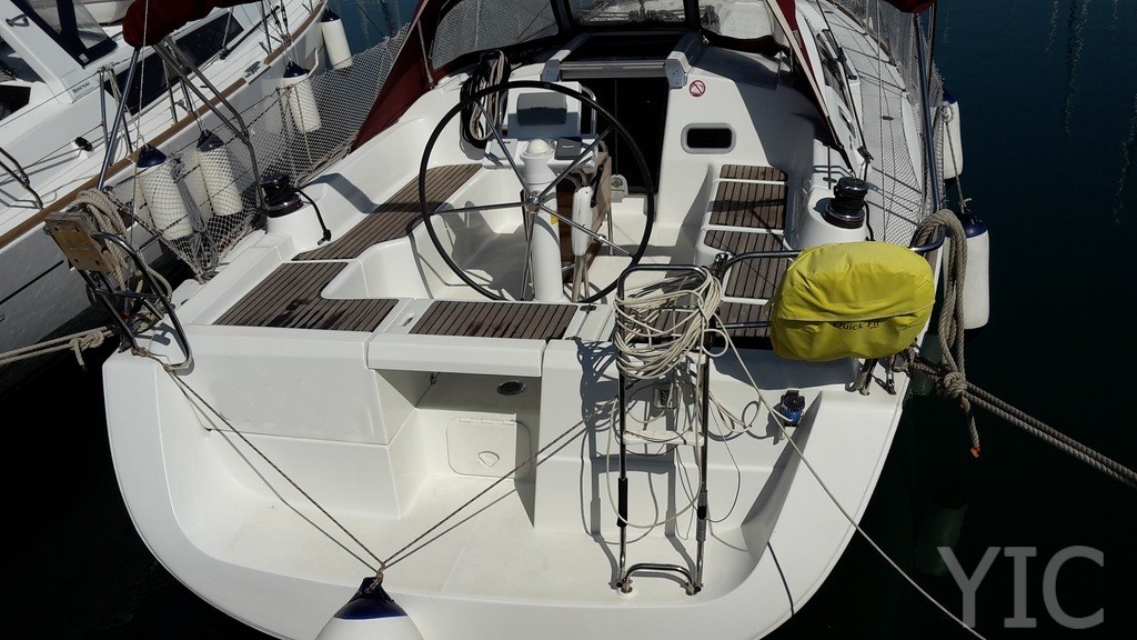 Description: Entertainment: Radio/CD, Cockpit Speakers Galley: Refrigerator, Cutlery, Galley equipment, Gas owen Instruments: Windex, VHF, GPS, Autopilot Interior: Hot Water System On-Deck: Electric anchor windlass, Cockpit shower, Fenders, Bimini top, Emergency tiller, Cockpit table Other equipment: 1 steering wheel, Linen, Set of tools, Log book, 2 gas bottles, Anchor, Furling genoa, Nautical charts and nautical guide, Pillows and blankets, Life jacket, Speedometer Safety Equipment: Fire extinguisher, First aid kit, Main anchor + 50m chain, Mooring ropes