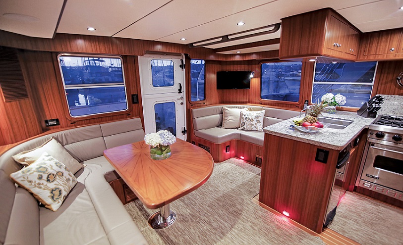 With the owners residing in Utah, they plan to cruise the West Coast of the United States. First they will leave Dana Point, California and cruise north to Alaska and then trek all the way south to Mexico. This will give their new boat a quick baptism in long-distance cruising. On this boat, the main cabin is for the owners and it is located forward. Guests can use the twin berths. She has a forward pilothouse with great visibility around and forward of the bow but she also has a secondary helm station on the flybridge.