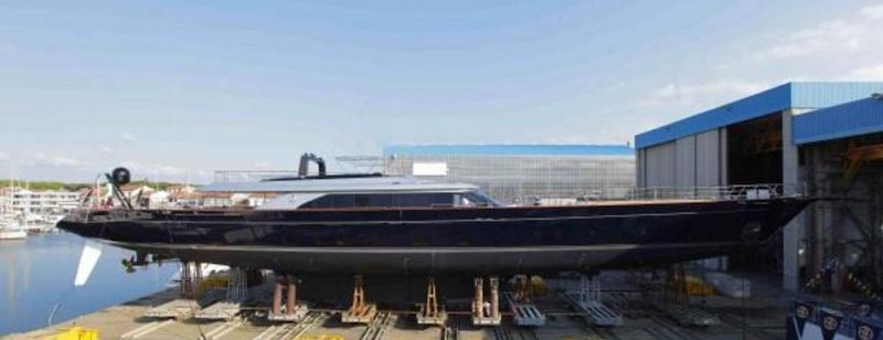The first images of the 71.5m/234’58” superyacht PROJECT 819 have been unveiled by Feadship as the yacht hit the water during her technical la