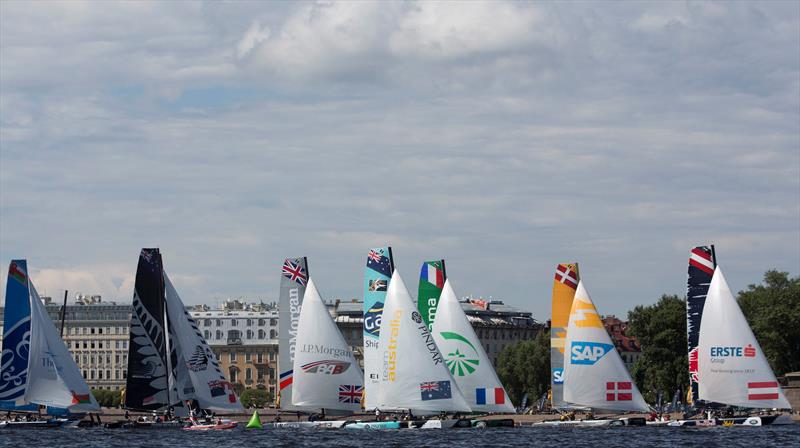 A massive 10 races were sailed on penultimate day of Act 4 of the Extreme Sailing Series™ in Saint Petersburg presented by Land Rover, with superb sailing conditions that saw six different race winners result in a shake-up on the Act leaderboard. Three race wins for Alinghi saw the Swiss clock up an astonishing 74 points, and regain control of the leaderboard, which helmsman Morgan Larson described as his “best day ever” in three years on the circuit. There were a handful of bumps and shunts, with a few of the teams running aground in the shallows of the beach, but the real story of the day were the movers and shakers of the pack, that saw huge gains made by J.P. Morgan BAR, SAP Extreme Sailing Team, Oman Air and Gazprom Team Russia, and with eight teams now eying the podium, it’s all perfectly poised for a colossal final showdown tomorrow.Blue skies and 10 knots of breeze made for thrilling – if not slightly exhausting – racing, and the Russian public turned out in their thousands to support their two home teams and watch the fleet of 12 high-performance catamarans battle on the confines of the Neva, while fans around Russia followed the racing live with national broadcaster, NTV+. Despite a handful of results at the bottom of the fleet, Leigh McMillan and The Wave, Muscat, who struggled for momentum, were able to hold off the onslaught from the ever encroaching pack to finish the day in second, while a final hour race win for Emirates Team New Zealand secured the team’s third place position, to skipper and Olympic silver medallist Peter Burling’s relief. “It was a tough day, it was really puffy and just enough wind so that when you got a puff you got enough speed. It felt like we were getting a bit hard done by in a few of the races early on, so it was great to come away with a win in that last race and a bit of luck came our way.”Both the five times Olympic medallist Ben Ainslie and his British team on J.P. Morgan BAR, and the co-skippers on the Danish outfit SAP Extreme Sailing Team – who have been the average fastest boat downwind this week according to the SAP analytics – were able to clock a win-a-piece today, and are on the edge of the podium, in fourth and fifth places respectively with just two points in it. Back on dock, Ainslie was optimistic about the final day’s racing. “It was a great day for sailing here and it was fantastic to see conditions like this. Race Director Phil Lawrence and the race management team did a really good job to get as many races in as they could now that the conditions are so good – it was good racing. Like everybody else we had a few ups and downs but in general it was a good day for us. Tomorrow we need to keep winning some races, I think we’ve improved a lot this season and we felt good about the way we were sailing today. So if we can keep doing that and improving as a team the results will come from there.”A string of consistent results for Oman Air – who won yesterday’s SAP Speed King Challenge – upgraded the team’s overnight position from ninth, to sixth – the biggest climbers of the day, while the home team Gazprom Team Russia had their best day of the season so far, managing to put two race wins in the bag, and according to the SAP analytics, were one of the fastest boats off the startline – second only to Alinghi. With less then 20 points separating the home nation team from third placed Emirates Team New Zealand, the Russian team’s helmsman Paul Campbell-James has his sights firmly set on the podium. “It was a day of highs and lows. As soon as the breeze comes up we’ve got good pace, we were fully in the mix today whereas yesterday I didn’t really feel that we were. Hopefully tomorrow there’s a good forecast with a bit more pressure again and we’ll be fighting – the podium is still on, and that’s the goal for tomorrow.”Red Bull Sailing Team, who struggled to gain traction on the Neva in the first two days, turned that on its head today, with a scattering of good results including two race wins to boost them two places up the leaderboard to ninth. Skipper Roman Hagara explained what was different onboard: “It was a much better day today. Yesterday we had a debrief, went through everything and changed the system a little bit on the boat, and it got much better. It was really tough, the conditions are tricky with gusts and shifting and the current is also in the game. It’s important for us to catch up on points, we need to make less mistakes and that’s the goal.”Realteam, who have been a picture of consistency this week, were unable to gain a footing today, and have slid down the leaderboard from third to eighth place. Groupama sailing team also lost a frustrating four places today, and are now seven points behind the Australian GAC Pindar, who under the guidance of Olympic champion Nathan Wilmot, were able to pick up a place on the leaderboard in tenth place.Extreme Sailing Series™ Act 4, Saint Petersburg presented by Land Rover standings after Day 3, 16 races (28.06.14)