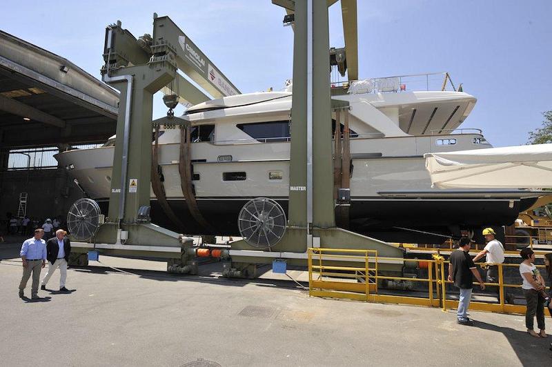 The first images of the 71.5m/234’58” superyacht PROJECT 819 have been unveiled by Feadship as the yacht hit the water during her technical la
