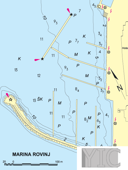 About us: ACI marina Rovinj is situated on the southeastern side of the harbor and has the most beautiful view of Rovinj. Surrounded by pine woods, it is a mere kilometer away from the town center. Anchored boats can peacefully rock in the eternal calm sea since the islet Saint Catherine provides the marina with the ideal protection from all winds. The marina is open year round for your convenience. Berths - 407 berths - 40 dry berths VHF:17 Tel:+385/52/813-133 GSM:+385/98/398-836 Fax:+385/52/842-366 Email:m.rovinj@aci-club.hr